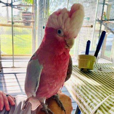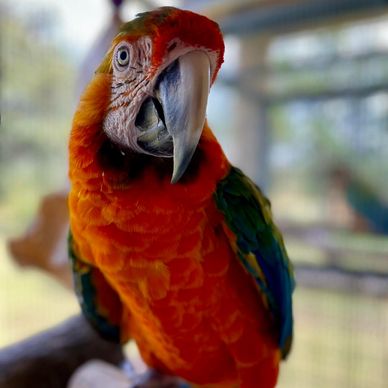Duce enjoys educating others about the importance of preserving beautiful birds like him in the wild. He is trained a flight behavior and can fly at indoor events.