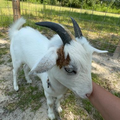 Our three adorable goats love people and love to hang out during events and encounters! All three are leash and petting zoo trained.